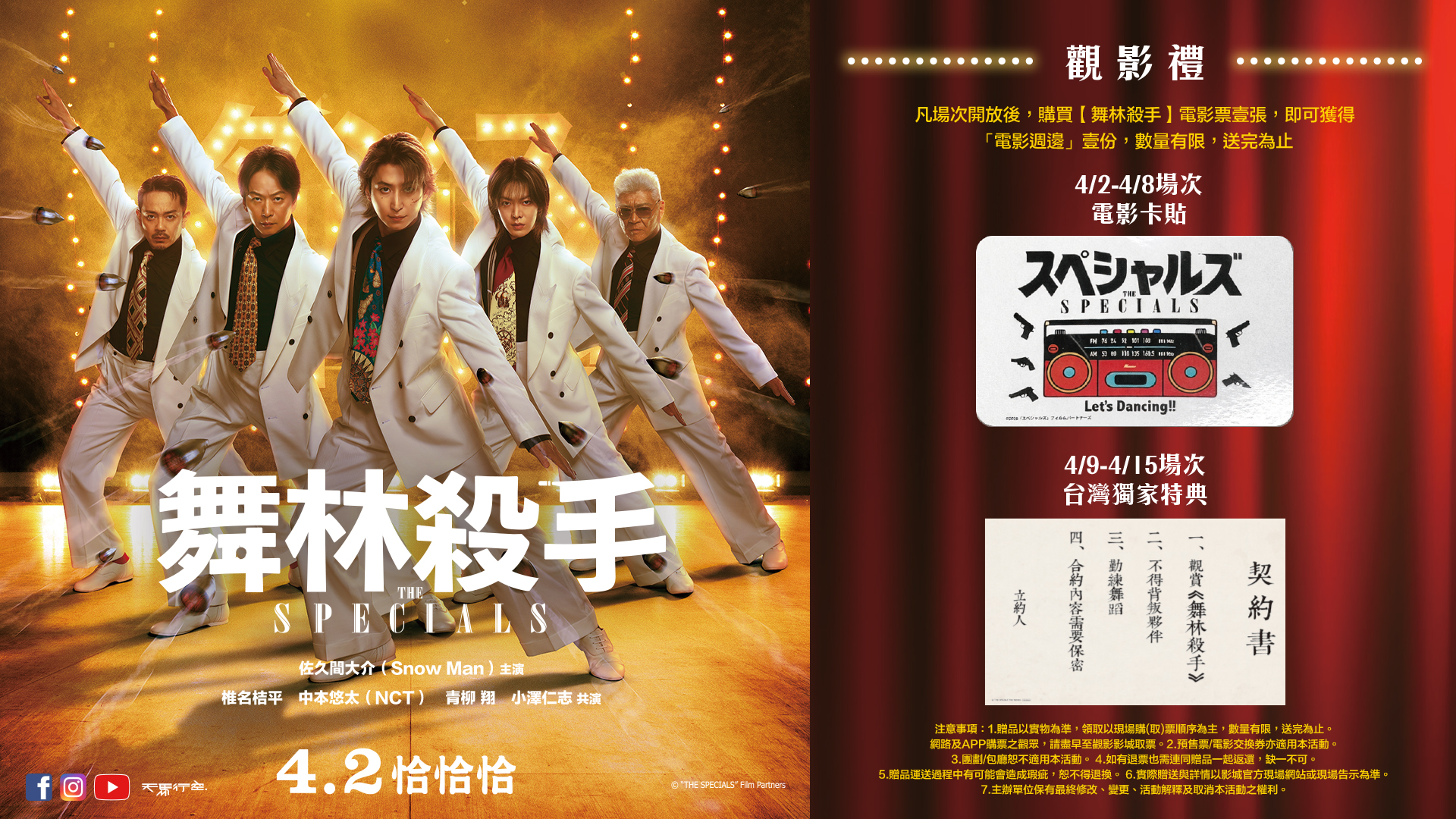 凡購買《舞林殺手》4/9-4/15起 場次電影票乙張,贈送「台灣獨家特典」 乙份。