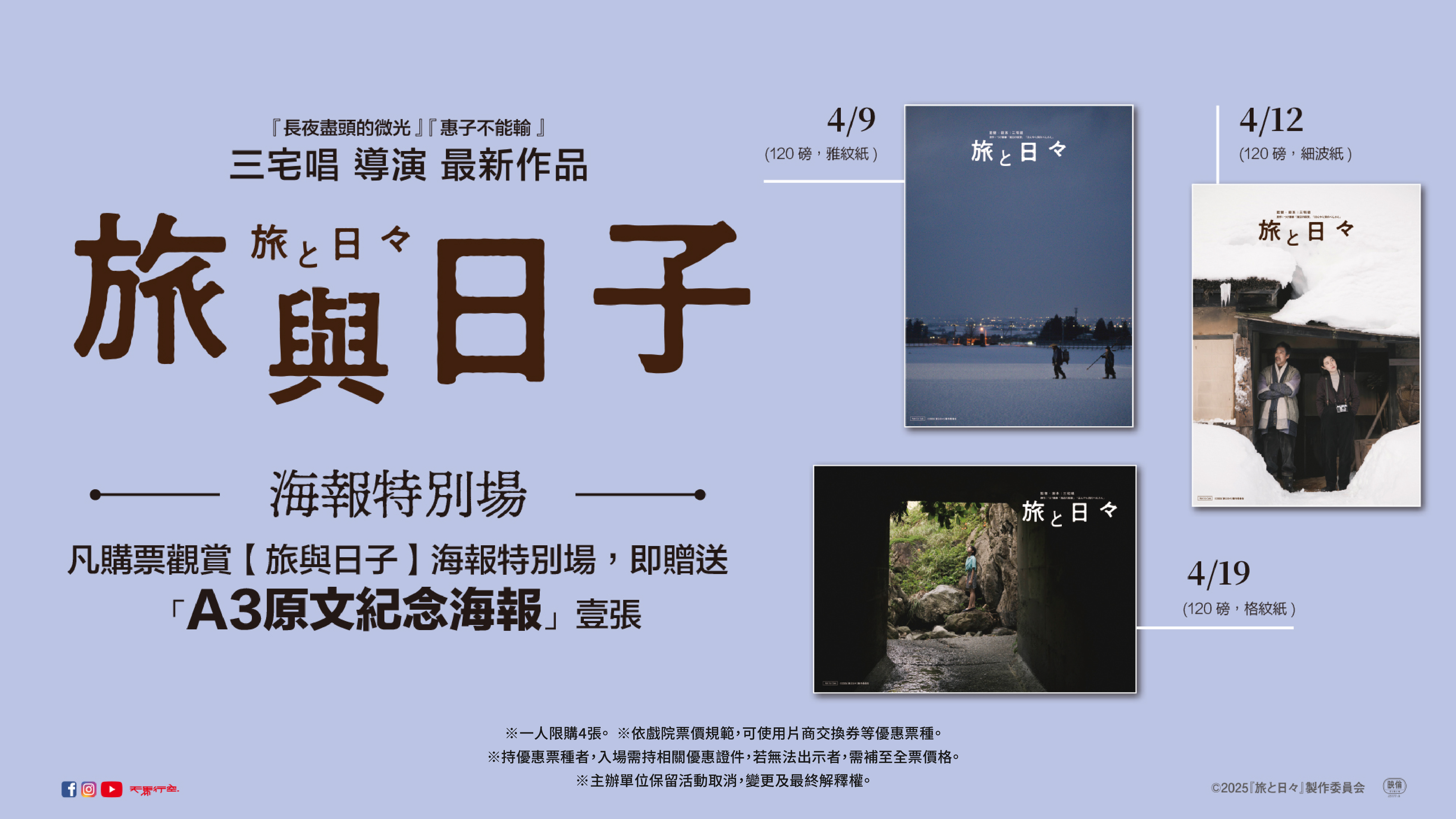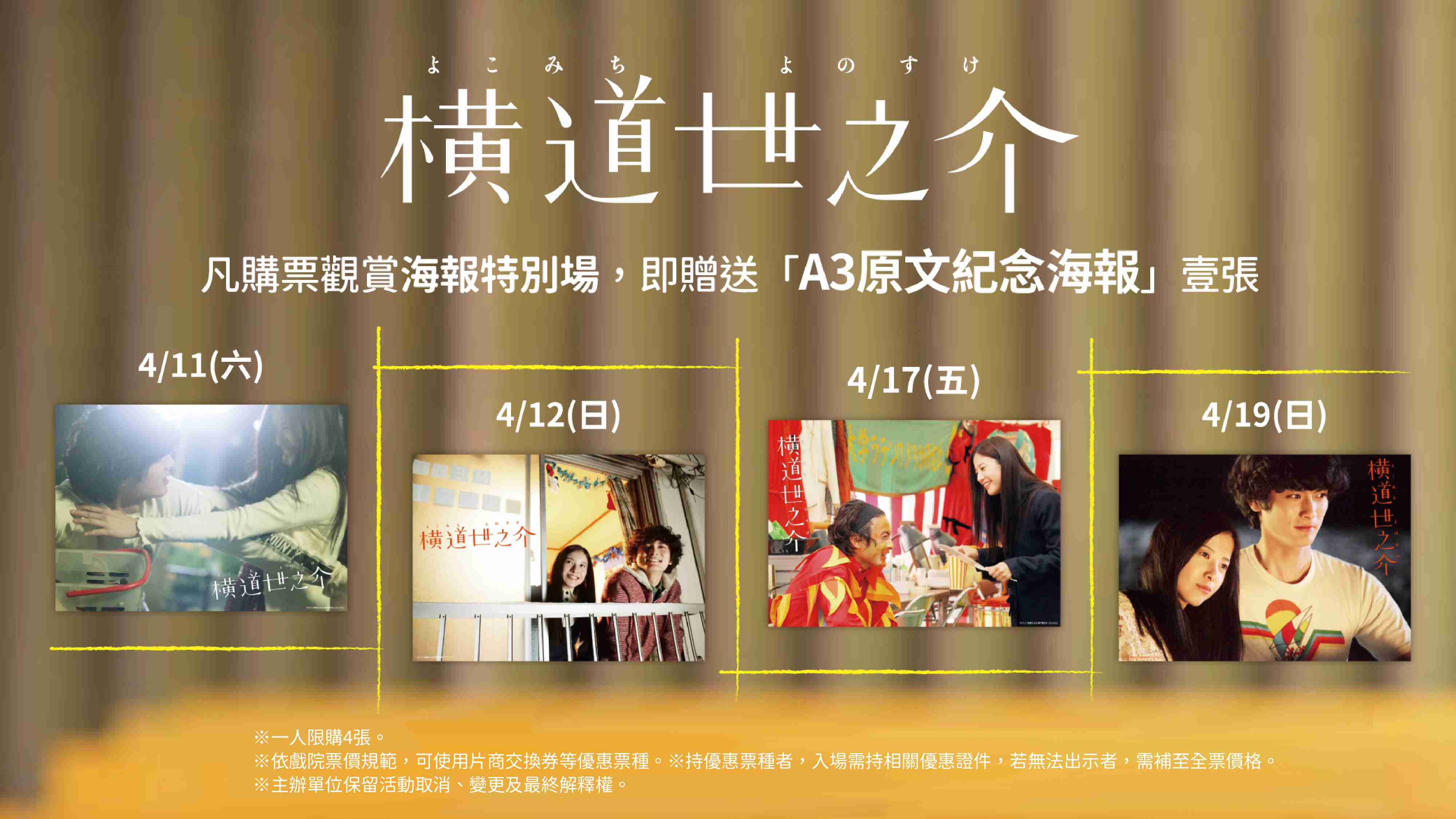 凡購買特別場電影票乙張,即贈「A3原文紀念海報」乙張。
