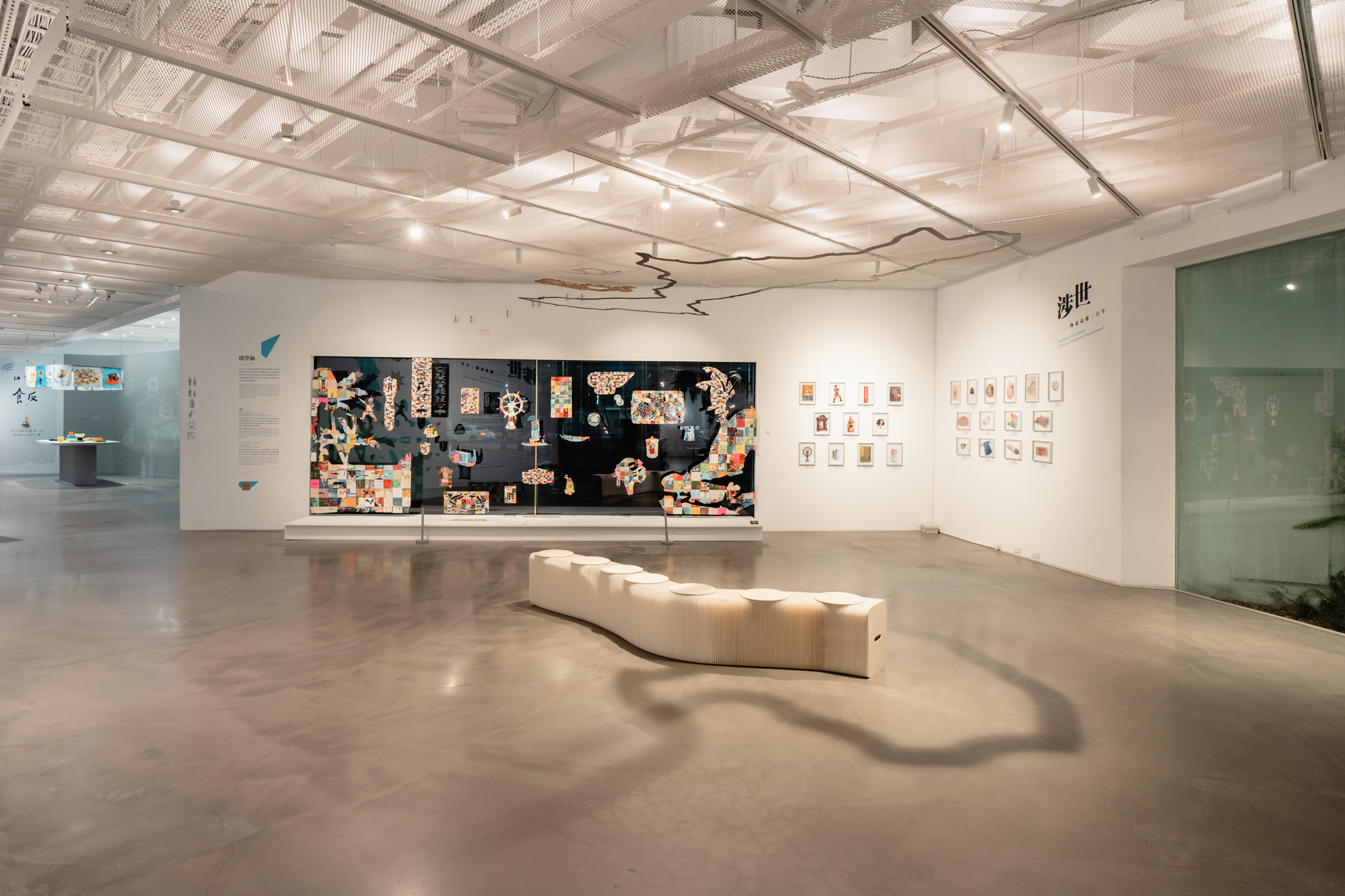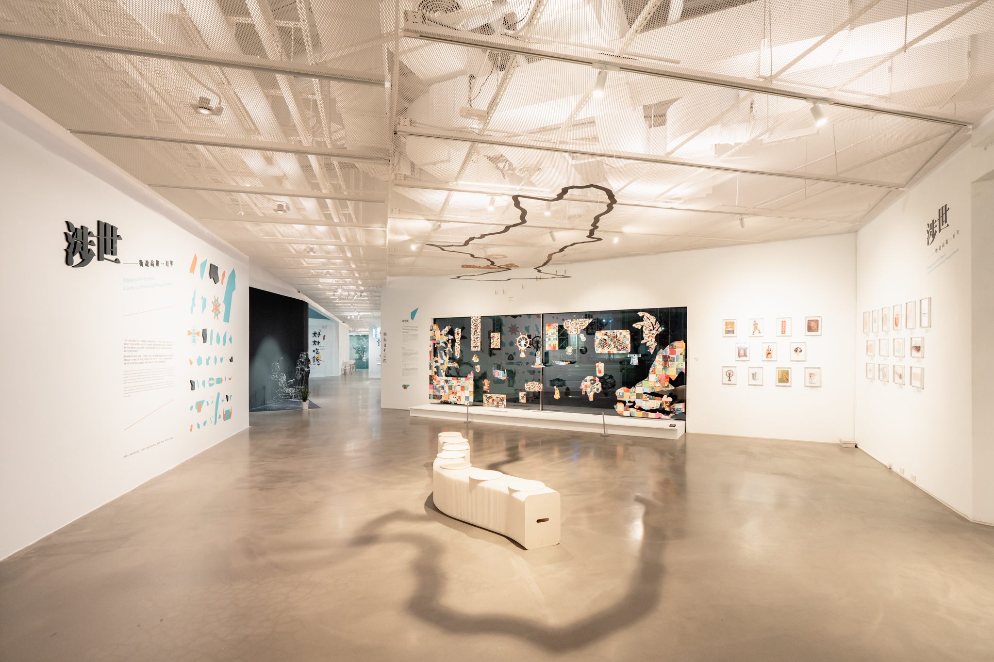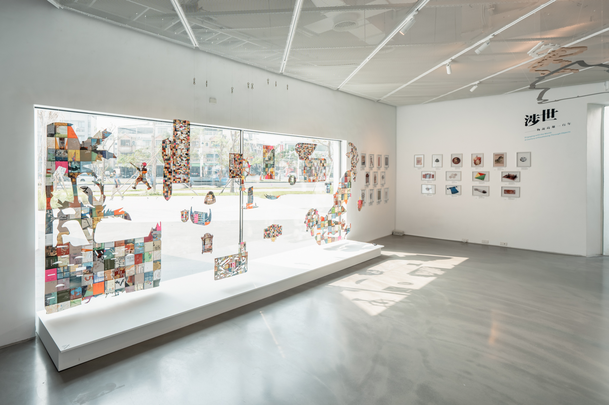 「涉世」一詞意指經歷世事。作為本次展覽的主標,體現高雄逐步涉入與世界互動的量能,也藉此表述1924年高雄設立「市」制後,邁向更快速的現代化步伐。隨著港埠、鐵路及產業等建設,高雄漸躍升為國際重要的貿易據點,同時也帶動城市人口成長與擴張,近代高雄更為臺灣重要的工業大城,也因匯聚來自各地的移民,成為具多元文化融匯的宜居城市。擅長轉換舊有物件語境的藝術家──周學涵,以高雄市立歷史博物館的典藏品為靈感,創造另一溝通界域,使典藏品有不同的觀看。近看,你所見是高雄藝文的摺頁、文宣;遠看你所見的,是一捲高雄城市發展的漫漫長軸。臥看,是高雄行政區域邊界的變化。邀請正在看展的你,一起從不同角度觀看展品吧!