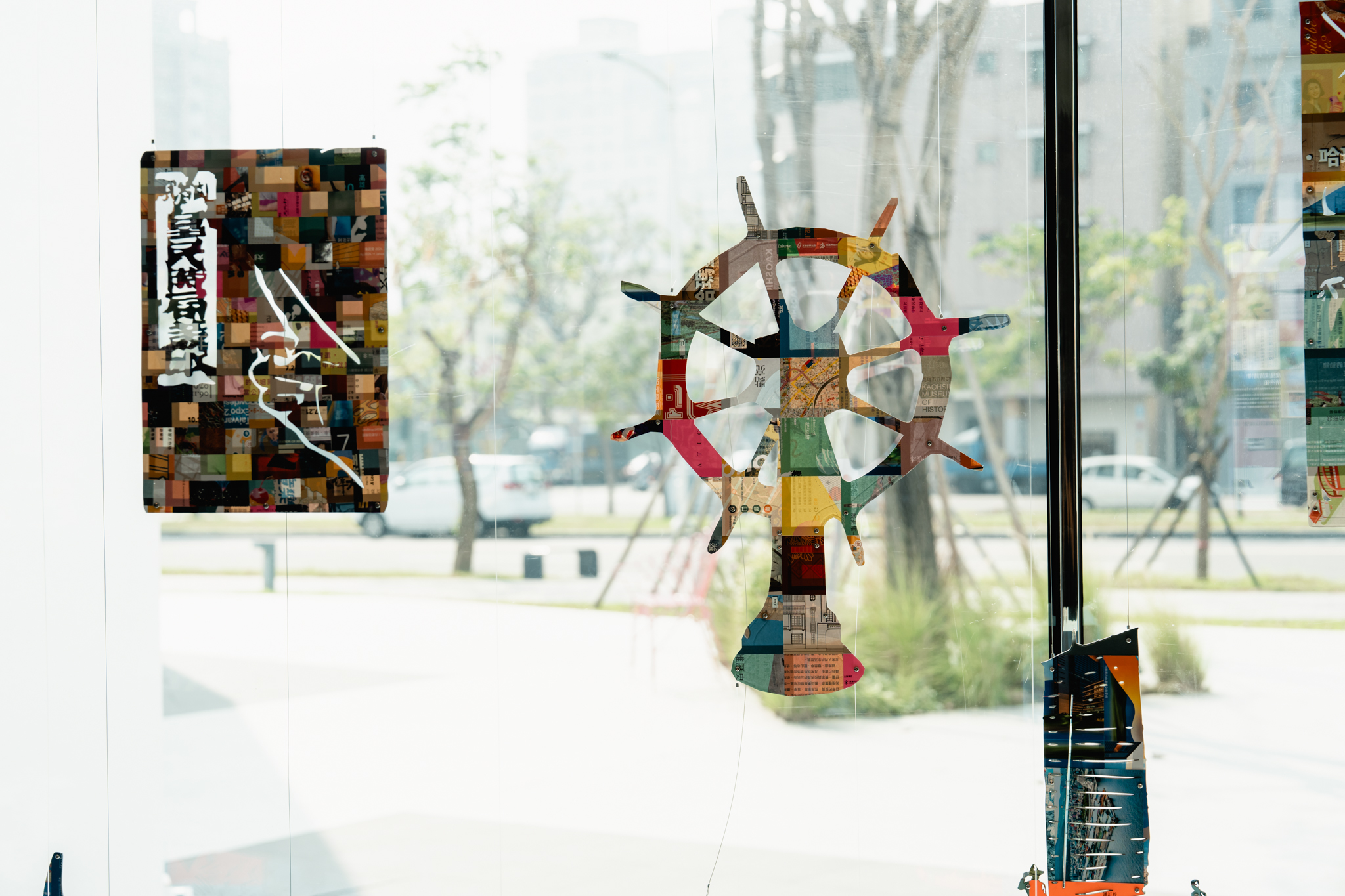 將過去的文宣品作為材料,拼貼高雄歷史文物的剪影,在落地窗前呈現類似皮影戲的光影效果。其中以五艘乘載不同時空脈絡的「船」為核心,定時地隨波浮動,共譜海港城市高雄設市百年包含多元文化、工業發展、地理環境、意識認同的總體意象。