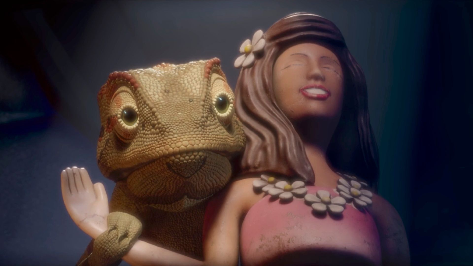 熱到融化的沙漠,兩隻調皮的變色龍追一隻甲蟲!他們一路翻滾、亂跑,誤闖進一個奇怪又神祕的地方,不只有搖搖晃晃的夏威夷裙女孩玩偶、還有翻覆的卡車!這場充滿驚奇的小冒險,佐以細膩的動畫呈現,直叫人大飽眼福!