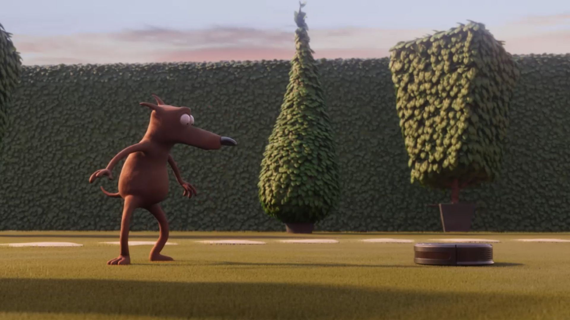 一名流浪狗先生眼神穿透豪宅大門,看見門內深處一名獨坐在陽台上的千金狗小姐。他戀愛了,但宅內平凡無奇的花園裡,盡忠職守的割草機器人和看似無害的折疊椅,都化身為護花使者。為愛癡狂的他,能否打敗它們,得到千金狗小姐的芳心?