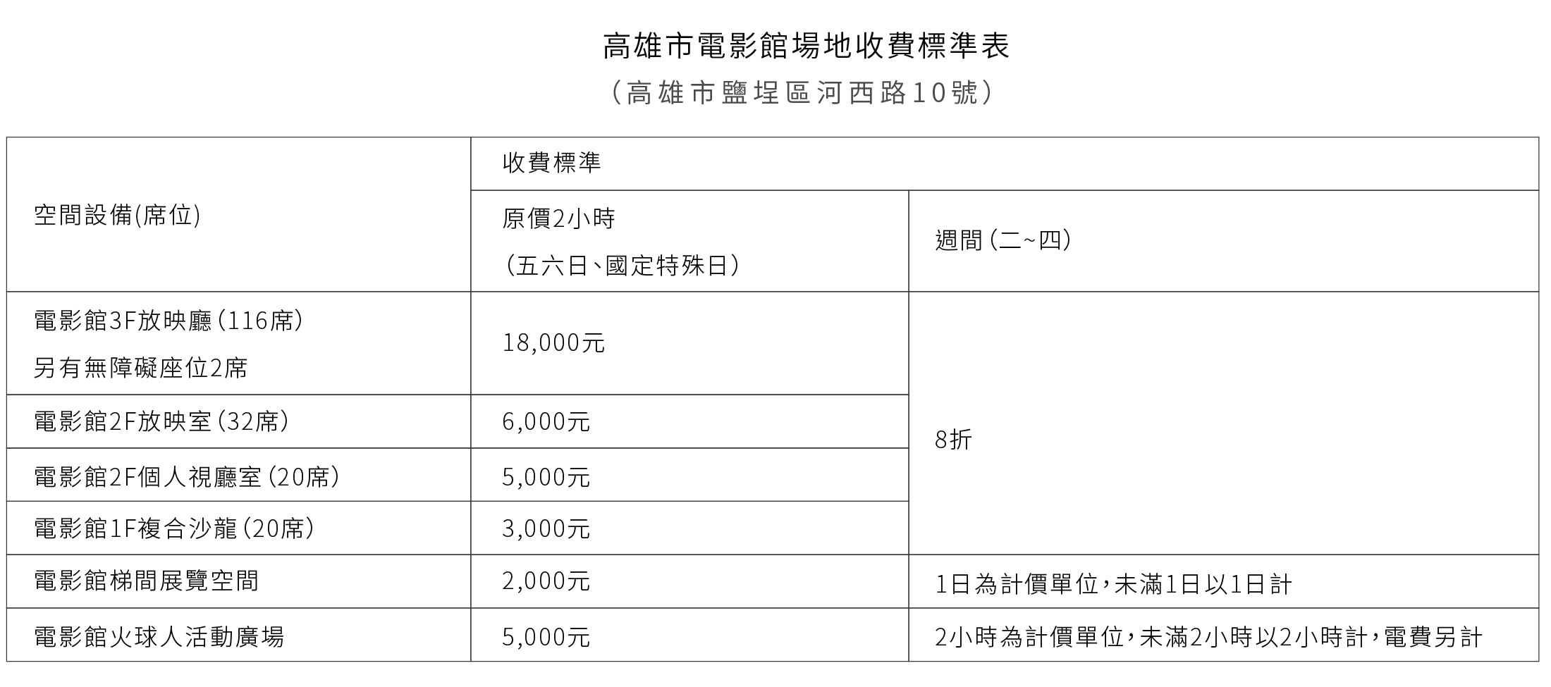 ✯ 團體優惠票/團劃包廳亦可至臨櫃申辦高雄市電影館會員。