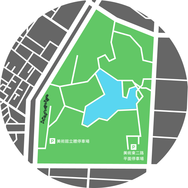 美術館路立體停車場出入口或美術東二路平面停車場